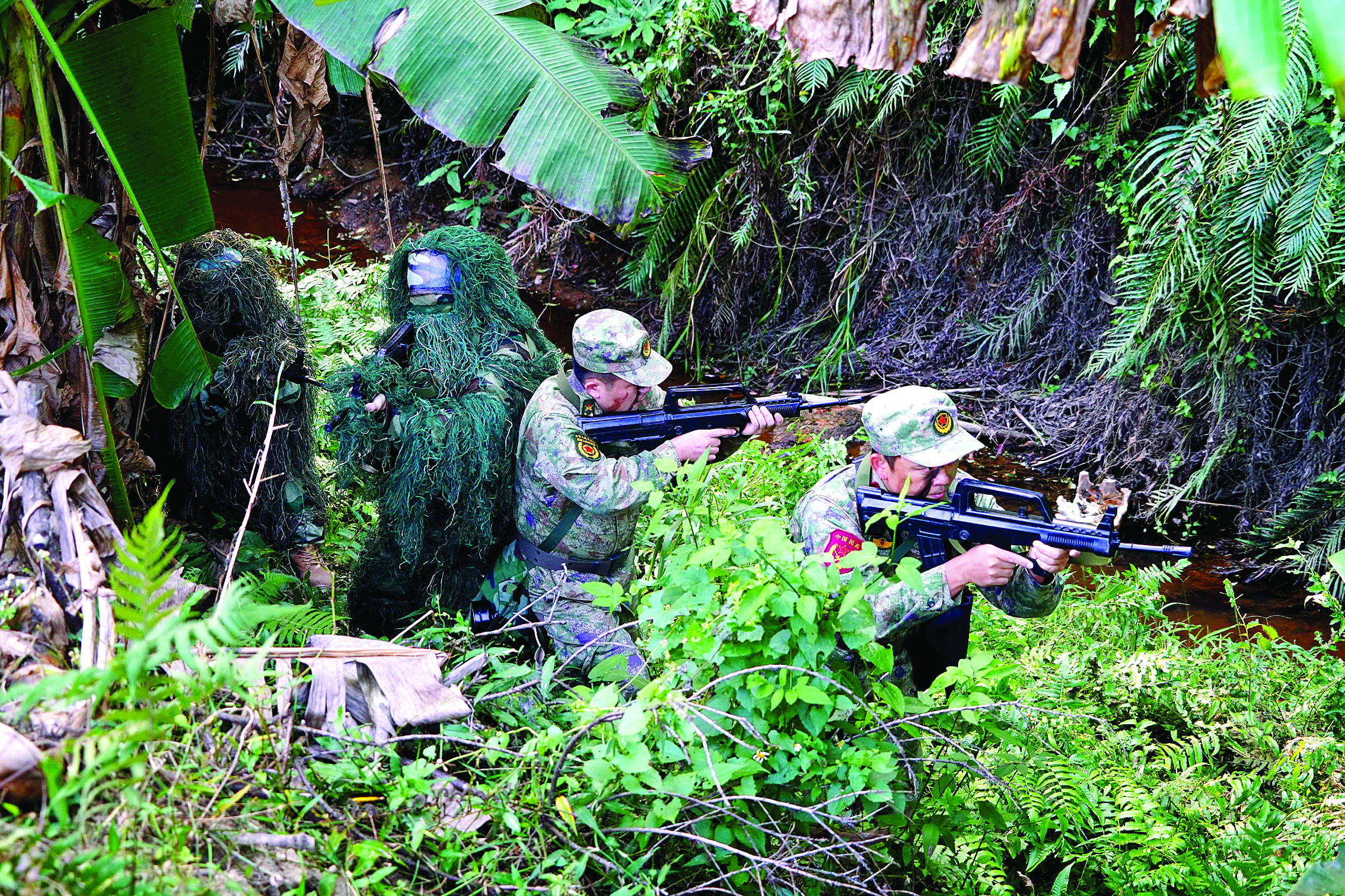 惠州軍分區(qū)組織全市專武干部進(jìn)行資格認(rèn)證和基本業(yè)務(wù)技能培訓(xùn)。圖為野外搜索訓(xùn)練。