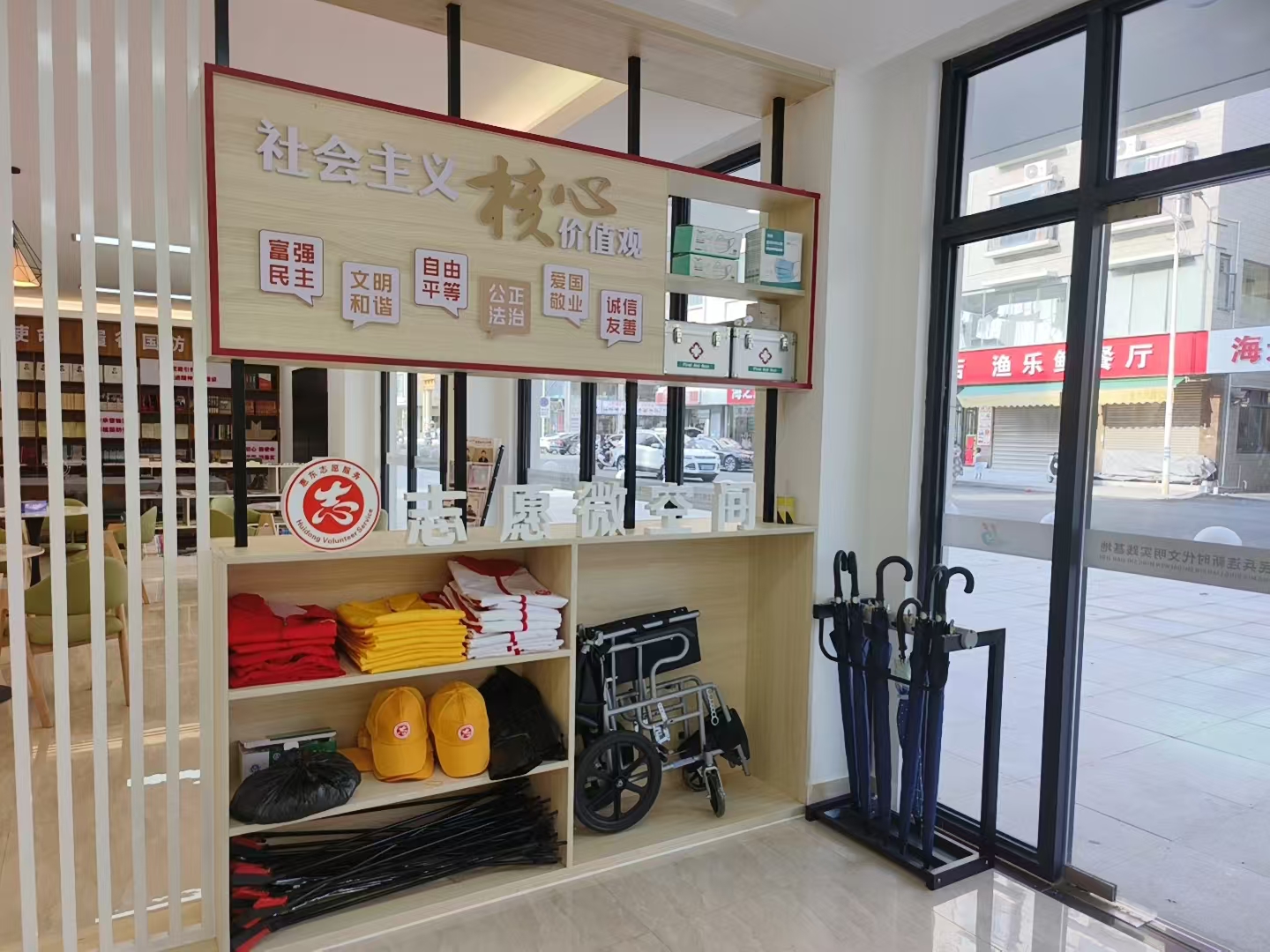 港口英雄民兵連新時(shí)代文明實(shí)踐基地里的志愿微空間。