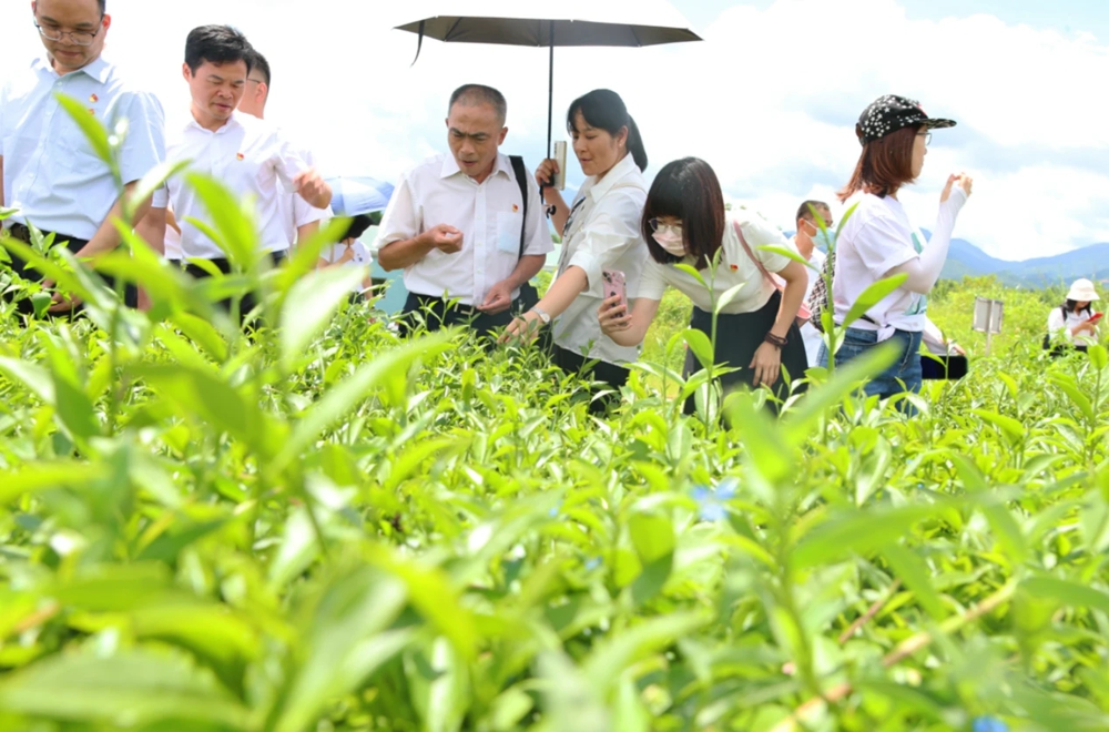 黨員來到多祝鎮(zhèn)的惠州市花海茶園參觀巖茶種植。