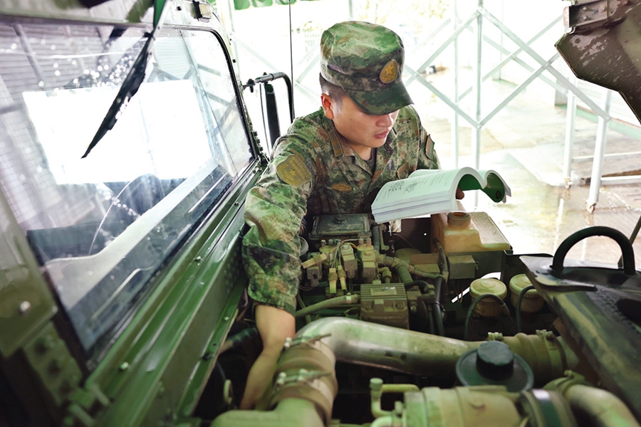 ——操作動(dòng)作不標(biāo)準(zhǔn),他就每天凌晨5時(shí)準(zhǔn)點(diǎn)出現(xiàn)在訓(xùn)練場(chǎng),反復(fù)鉆研倒車(chē)、穿桿、過(guò)彎等細(xì)節(jié),確保方向、制動(dòng)精確到每米每秒,每個(gè)課目至少學(xué)會(huì)3種通過(guò)方法。正是憑著這股拼勁狠勁,他熟練掌握了全團(tuán)所有普裝車(chē)型的駕駛操作,不到19歲就成為了團(tuán)隊(duì)最年輕的教練班長(zhǎng)。
