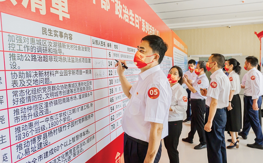 過好“政治生日”,牢記初心使命。一年來,惠州把黨員過“政治生日”作為提升黨內政治生活質量的重要舉措,在市級層面開展“擔當作為踐初心 砥礪奮進創(chuàng)一流”黨員領導干部“政治生日”系列活動,通過每人認領一件民生實事等系列舉措,把過“政治生日”與推動中心工作、解決實際問題結合起來,推動黨員干部以實際行動踐行初心使命。同時,全市各地各部門也積極組織黨員集體過“政治生日”,以重溫入黨誓詞、分享入黨初心故事、警示教育等形式,引導廣大黨員加強黨性修養(yǎng)、筑牢信仰之基、補足精神之鈣、把穩(wěn)思想之舵。