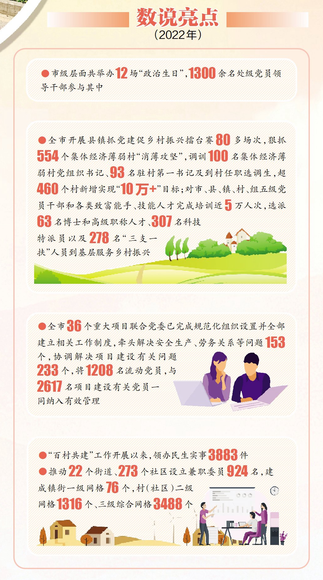 黨的建設是抓好各項工作的根本。生動活潑、亮點紛呈的黨建工作,能夠有效提升基層黨組織的組織力和黨員隊伍的戰(zhàn)斗力,對經濟社會發(fā)展起到強有力的推動作用。2022年,惠州堅持以習近平新時代中國特色社會主義思想為指導,深入貫徹落實新時代黨的建設總要求和新時代黨的組織路線,真抓實干、開拓創(chuàng)新,切實把黨的政治優(yōu)勢、組織優(yōu)勢轉化為推動各項工作開展的優(yōu)勢,為惠州高質量發(fā)展提供了堅強組織保證。