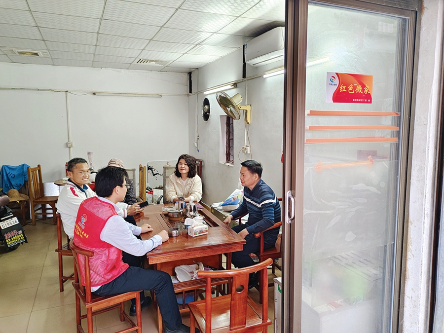 房東、租客和惠環(huán)街道平南村出租屋管理黨支部書記在“紅色微家”議事。