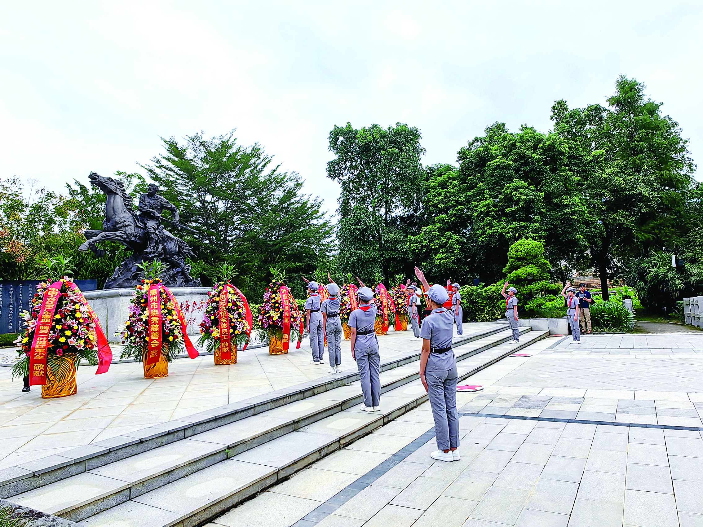 惠州日?qǐng)?bào)訊 (記者李芳娟 通訊員陳婷)今年是葉挺將軍誕辰127周年,惠陽(yáng)舉行系列活動(dòng)緬懷革命先烈,傳承紅色基因,并深入開(kāi)展學(xué)習(xí)貫徹習(xí)近平新時(shí)代中國(guó)特色社會(huì)主義思想主題教育。日前,惠陽(yáng)區(qū)在葉挺紀(jì)念館英雄廣場(chǎng)舉行紀(jì)念葉挺將軍誕辰127周年活動(dòng)儀式。惠陽(yáng)區(qū)人大常委會(huì)黨組書(shū)記、主任葉茂庭,區(qū)委常委、宣傳部部長(zhǎng)、區(qū)政府黨組成員陳愛(ài)華出席紀(jì)念儀式,惠陽(yáng)區(qū)各界代表及中小學(xué)生代表500余人參加了紀(jì)念儀式。