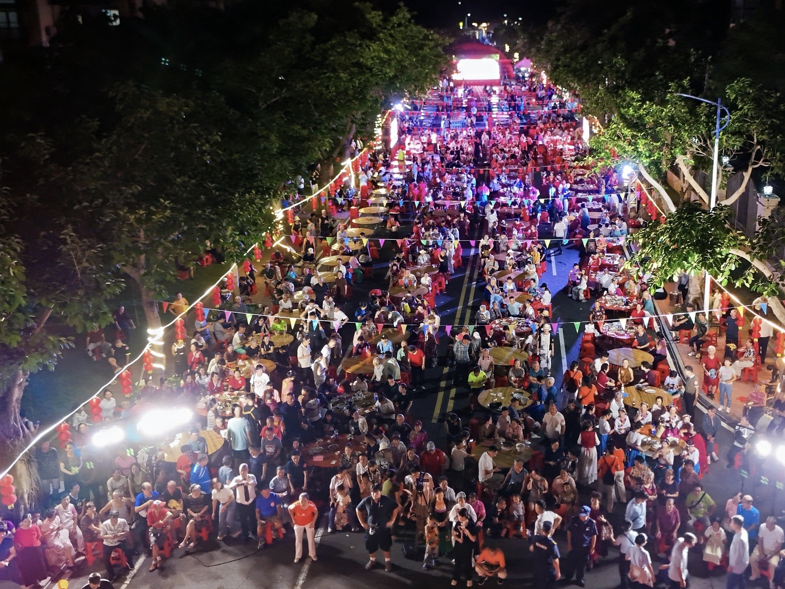 稔山鎮(zhèn)阿婆角社區(qū)舉行百家宴。稔山鎮(zhèn)政府供圖
