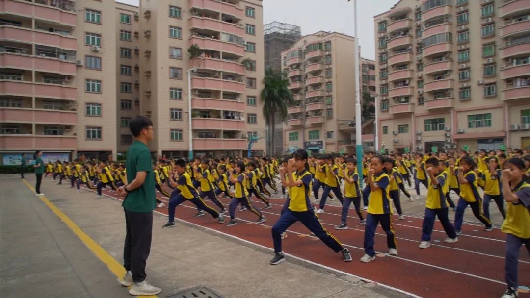 長湖苑小學(xué)開展軍姿操訓(xùn)練。