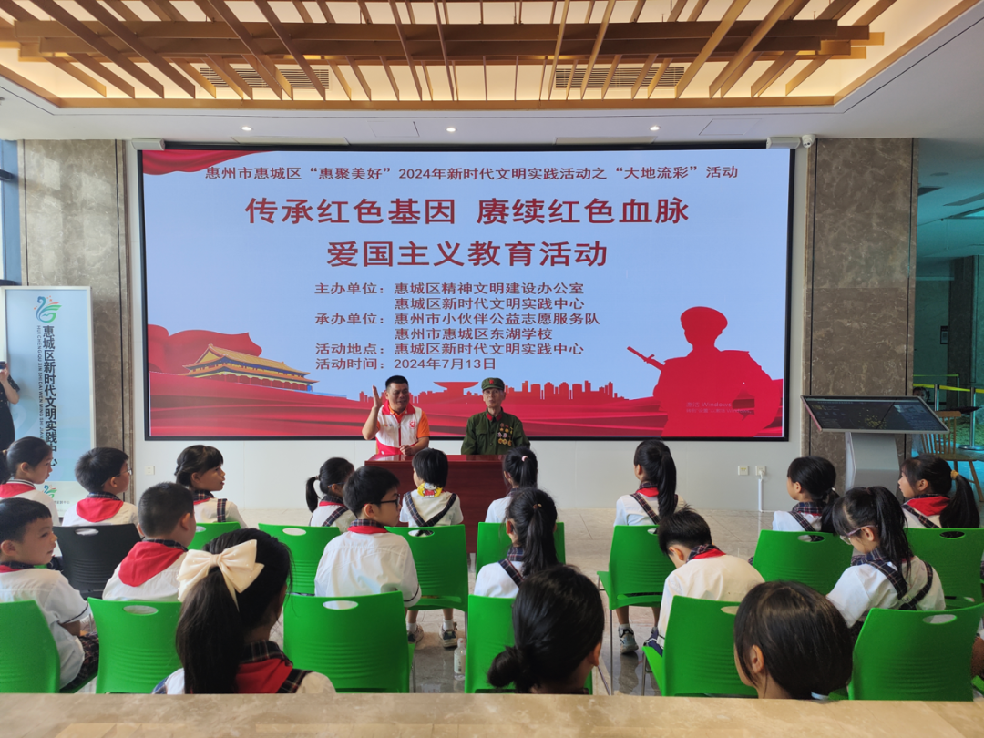 為傳承紅色基因,弘揚革命精神。近日,惠城區(qū)精神文明建設(shè)辦公室、惠城區(qū)新時代文明實踐中心、惠州市惠城區(qū)東湖學校聯(lián)合小伙伴公益,舉辦惠州市惠城區(qū)“惠聚美好”2024年新時代文明實踐活動之“大地流彩”——“傳承紅色基因 賡續(xù)紅色血脈”愛國主義教育活動,活動旨在銘記歷史、緬懷先烈,激發(fā)青少年的愛國情懷,30多名青少年參加活動。