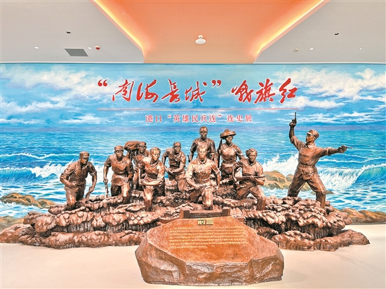港口英雄民兵連展覽館的“南海長城戰(zhàn)旗紅”主題雕塑