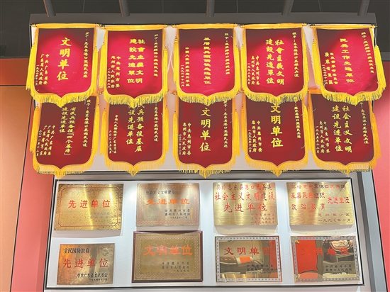 進(jìn)入該樓層的榮譽(yù)室,一面面錦旗、一張張證書、一塊塊獎(jiǎng)牌引人注目,它們雖靜靜陳列著,卻無聲地講述著連隊(duì)波瀾壯闊、充滿榮耀的崢嶸歲月。再往前,則可以看到民兵連的群英譜,不僅展示有連隊(duì)歷任主官,還有參戰(zhàn)立功受獎(jiǎng)和平時(shí)立功受獎(jiǎng)的人員。據(jù)了解,1962年的小星山戰(zhàn)斗以來,港口民兵連獲榮譽(yù)稱號(hào)1人,一等功臣5人,二等功臣7人,三等功臣15人。