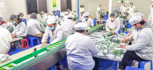 連日來,位于博羅縣羅陽街道義和社區(qū)的廣東新峰藥業(yè)股份有限公司抗疫類藥品生產(chǎn)車間一派繁忙的景象,現(xiàn)場工人們正緊張有序地加快生產(chǎn),全力趕制在手的訂單。在其中一個全自動化生產(chǎn)車間內(nèi),生產(chǎn)線正開足馬力運(yùn)行,感冒靈顆粒等抗病毒感冒類藥物源源不斷地生產(chǎn)出來,不到一分鐘的時間,即可完成封裝及打包。另一邊的流水線上,三十多名工人正在緊張忙碌的整理封裝好的藥品,進(jìn)行裝箱出貨。