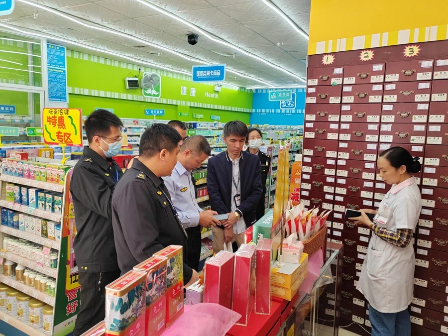 惠州市市場監(jiān)督管理局與惠城區(qū)市場監(jiān)督管理局的執(zhí)法人員對藥店開展專項檢查。