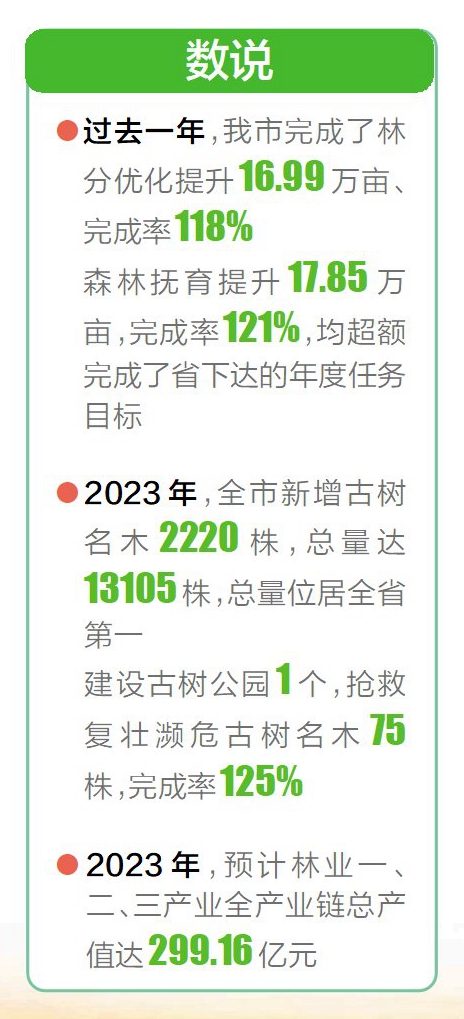 “綠了就是美了”“多種樹(shù)、少砍樹(shù)”……秉持這些理念,我市完成了林分優(yōu)化提升16.99萬(wàn)畝、完成率118%;森林撫育提升17.85萬(wàn)畝,完成率121%,均超額完成了省下達(dá)的年度任務(wù)目標(biāo)。2023年8月以來(lái),我市裸露地復(fù)綠、“四旁”“五邊”綠化美化攻堅(jiān)工作取得積極成效,完成裸露地復(fù)綠141個(gè)、面積5958畝,“四旁”“五邊”植樹(shù)52.85萬(wàn)株,積極推動(dòng)“植綠”向最后一公里延伸。