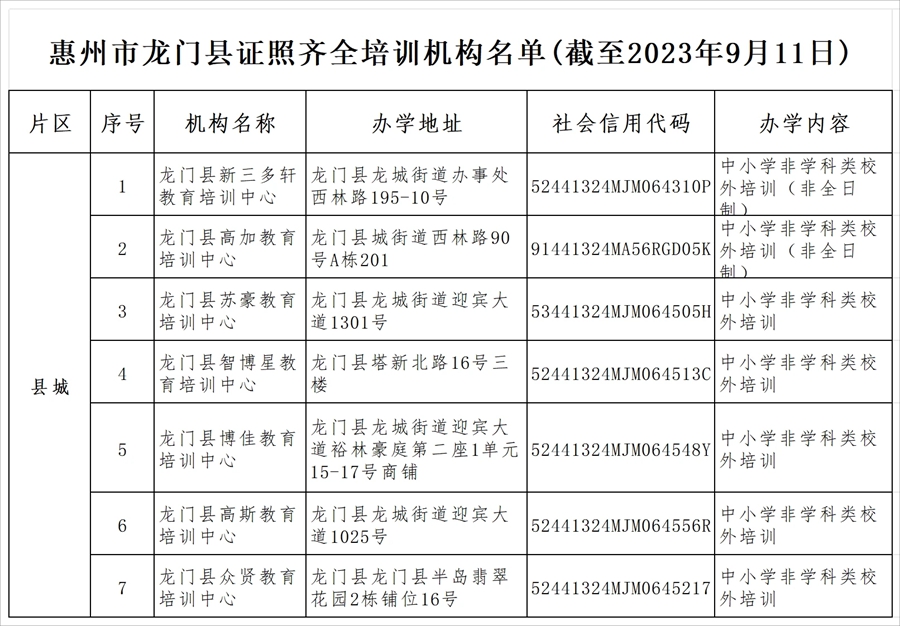 為進(jìn)一步鞏固我市“雙減”工作成果,方便廣大學(xué)生及家長(zhǎng)查詢和選擇合法合規(guī)教育培訓(xùn)機(jī)構(gòu),9月18日,惠州市教育局發(fā)布《關(guān)于公布惠州市證照齊全培訓(xùn)機(jī)構(gòu)名單的公告》,公布我市由教育行政部門審批監(jiān)管的證照齊全培訓(xùn)機(jī)構(gòu)名單(截至2023年9月11日)。