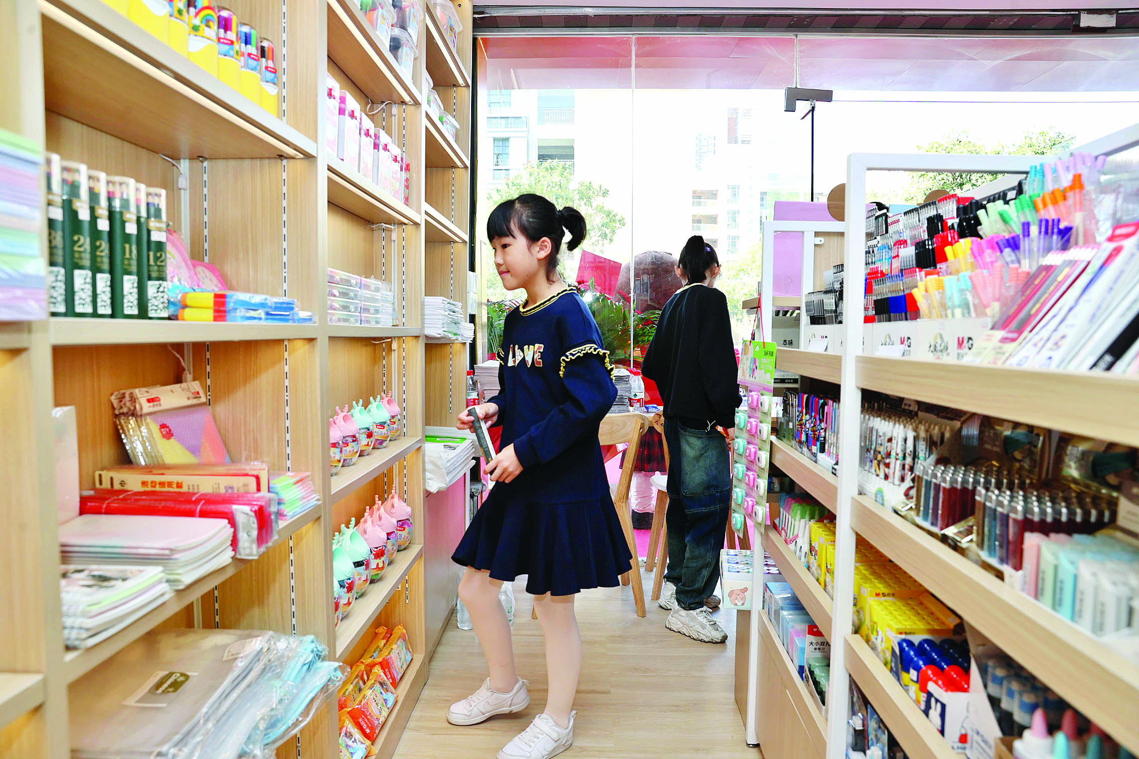 小朋友在小惠同學(xué)驛站選購(gòu)學(xué)習(xí)用品。惠州日?qǐng)?bào)記者楊建業(yè) 攝