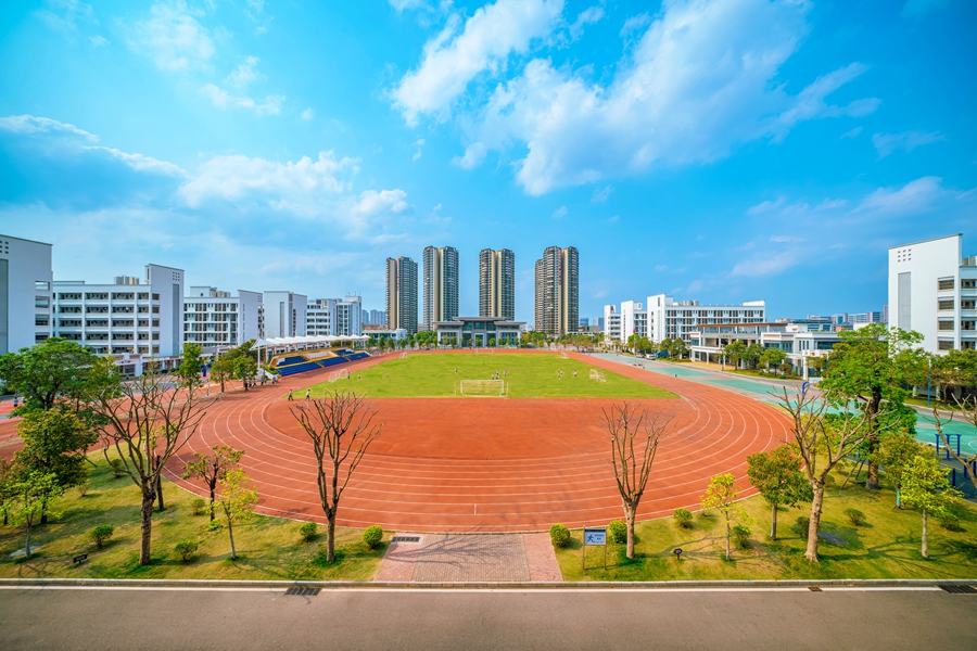 圖書館、體育館、游泳池、400米標(biāo)準(zhǔn)運動場、籃球場、排球場、網(wǎng)球場,高標(biāo)準(zhǔn)生物園(生物教學(xué)實踐基地)、地理園、理化生現(xiàn)代化實驗探究室、球體天象館、錄播室、創(chuàng)客室等一應(yīng)俱全。高標(biāo)準(zhǔn)設(shè)計實驗室、體育館,課室均按AI課室標(biāo)準(zhǔn)建設(shè)。