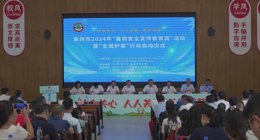7月2日,惠州市2024年“暑假安全宣傳教育周”活動(dòng)暨“全城護(hù)苗”活動(dòng)在惠州中學(xué)實(shí)驗(yàn)學(xué)校舉行。