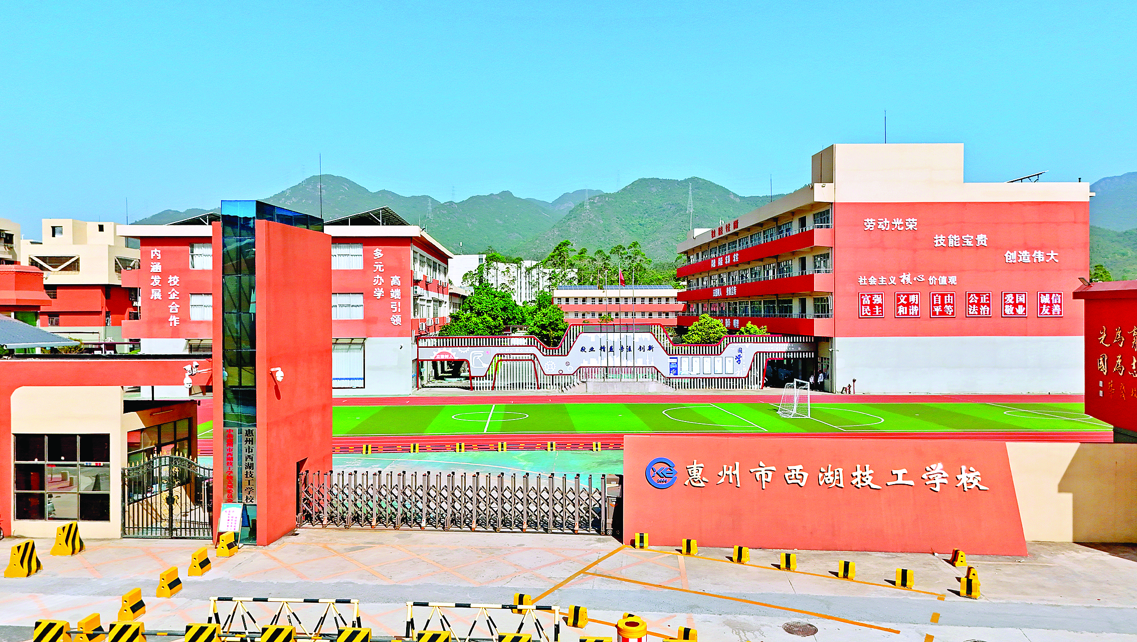 雄壯的象頭山下,小金河畔金龍大道與金羅路交會(huì)處,一座環(huán)境優(yōu)美、占地面積5萬(wàn)多平方米的省重點(diǎn)技工學(xué)校——惠州市西湖技工學(xué)校巍然矗立,成為莘莘學(xué)子技能成才、成就夢(mèng)想的理想學(xué)府。