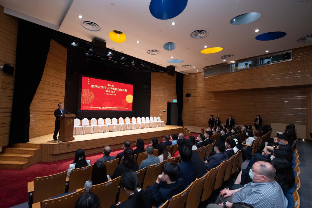 第七屆澳門(mén)大學(xué)生天津?qū)W習(xí)交流計(jì)劃開(kāi)班儀式現(xiàn)場(chǎng)(6月6日攝)。新華社記者 張金加 攝