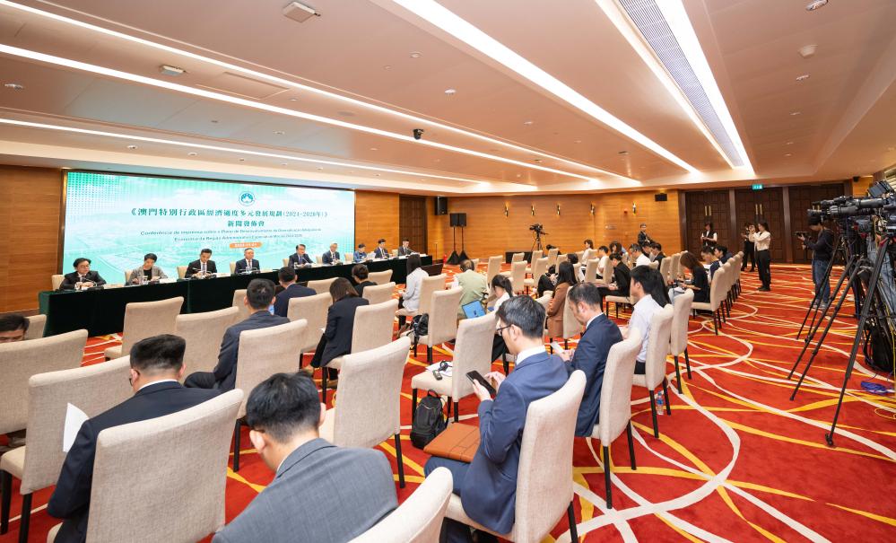 這是11月1日拍攝的澳門特區(qū)政府公布《澳門特別行政區(qū)經(jīng)濟(jì)適度多元發(fā)展規(guī)劃(2024-2028年)》新聞發(fā)布會(huì)現(xiàn)場(chǎng)。新華社記者 張金加 攝