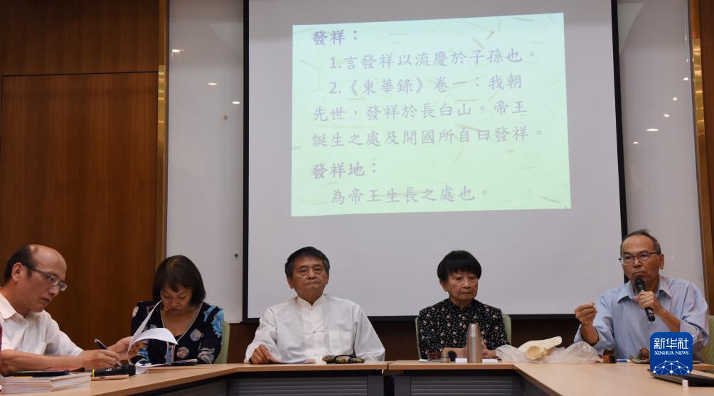 11月6日,臺(tái)灣師范大學(xué)退休教授潘朝陽(yáng)(右一)在“歷史教育新三自運(yùn)動(dòng)協(xié)會(huì)”記者會(huì)上發(fā)言。新華社記者 劉斐 攝