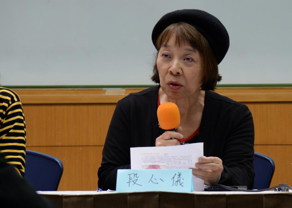 ??2023年12月23日,臺北中山女中退休語文老師段心儀在“歷史教育新三自運(yùn)動協(xié)會”記者會上發(fā)言。新華社記者 陳鍵興 攝