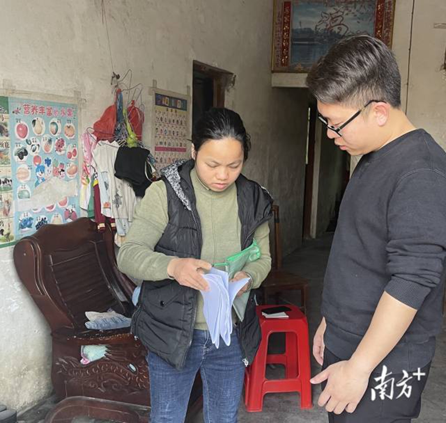李鼎新(右)生前入戶了解申請低保家庭情況。
