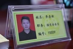 李鼎新辦公桌上擺放的工牌。(吳明/攝)