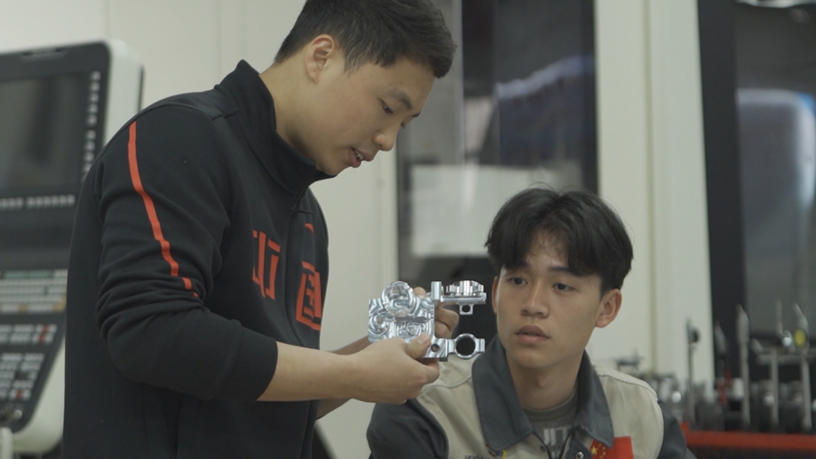 在他任教的幾年中,一共培養(yǎng)了6名學(xué)生,全都取得了不錯(cuò)的成績。其中有一名世界冠軍,5年后繼承了他的衣缽,在2022年世界技能大賽上同樣摘下數(shù)控銑項(xiàng)目的金牌。還有一名學(xué)生畢業(yè)后被私企“挖”去做職業(yè)培訓(xùn),光起步年薪就已達(dá)到20萬。