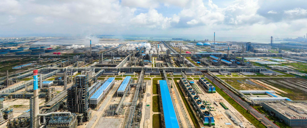廣東省湛江市東海島拍攝的中科煉化廠區(qū)(5月25日攝,無人機照片)。聚集了寶鋼湛江鋼鐵、中科煉化和巴斯夫項目及一批上下游產業(yè)的湛江東海島,正迅速崛起綠色鋼鐵和綠色石化兩大千億級臨港工業(yè)集群,成為廣東最大的臨港工業(yè)島。新華社記者 鄧華 攝