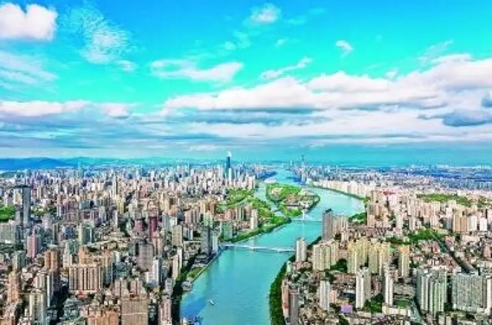 廣州珠江兩岸城市建筑在藍(lán)天白云映襯下,壯美如畫。魏勁松攝/光明圖片