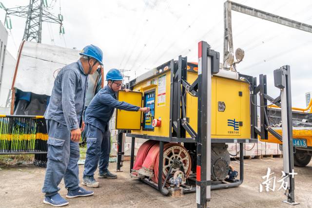 8月31日,南方電網(wǎng)廣東珠海供電局運(yùn)維人員在檢查自主研發(fā)的高機(jī)動(dòng)綜合應(yīng)急排水工作站狀態(tài)。