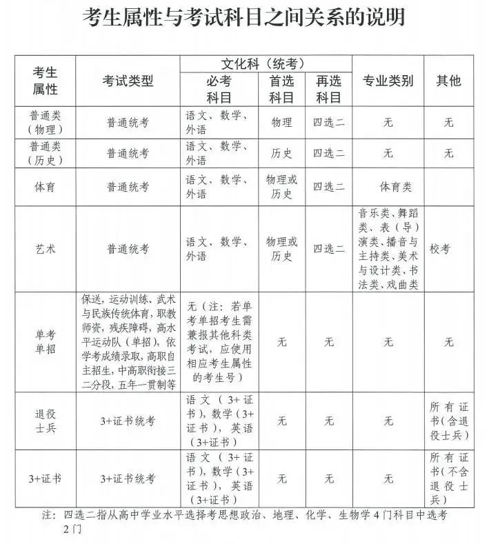 考生屬性與考試科目之間的關(guān)系說(shuō)明詳見(jiàn)下表: