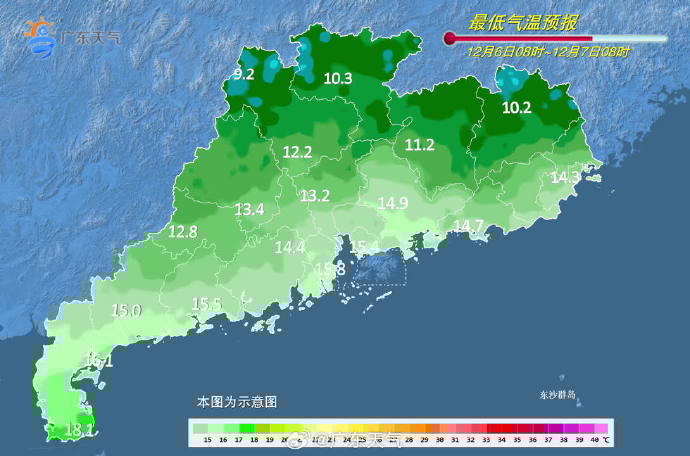 7日,全省大部晴天。最低氣溫:粵北和珠江三角洲北部市縣7~11℃,珠江口附近和粵西市縣15~18℃,其余市縣12~15℃。