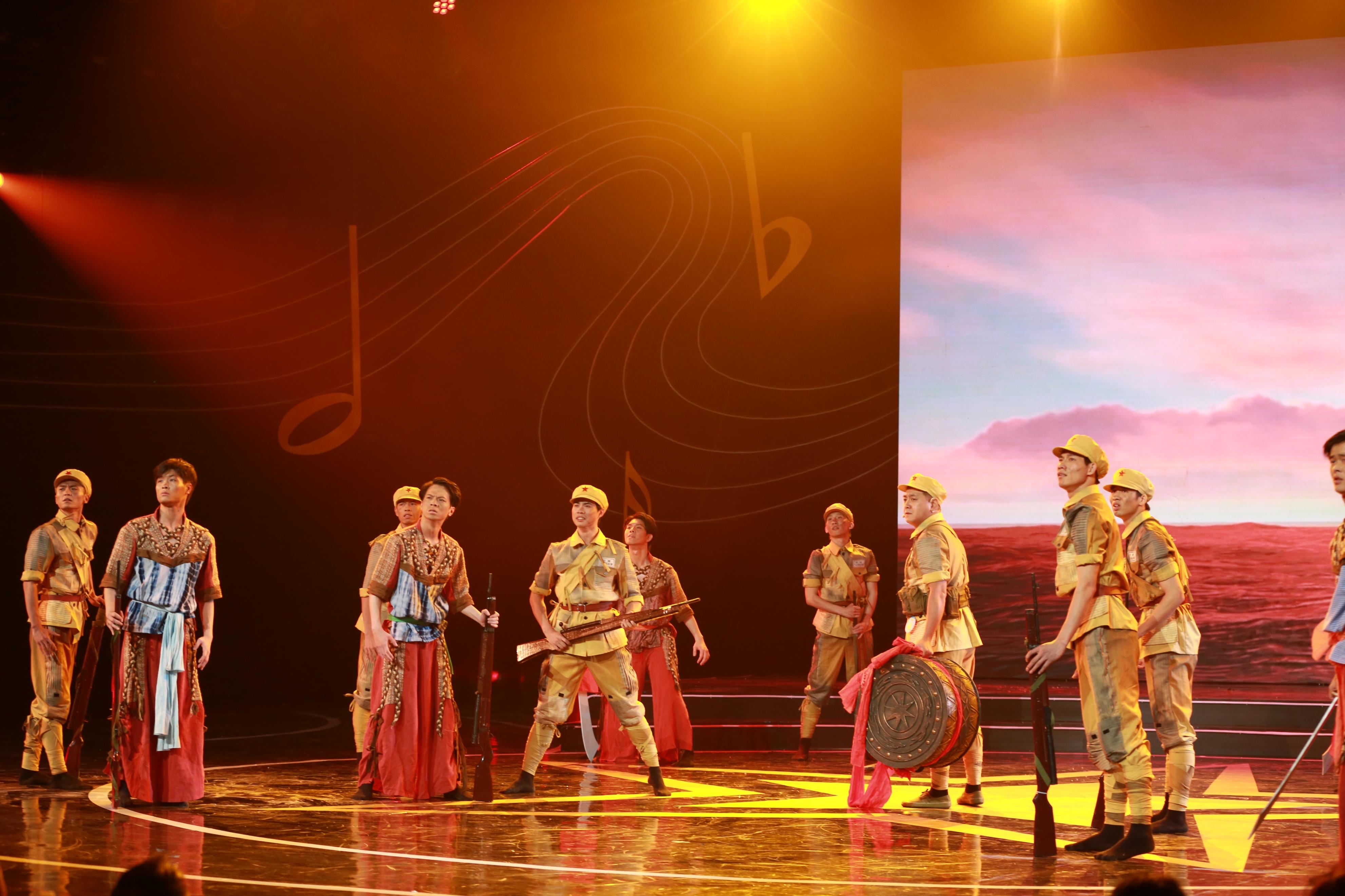 排名第三的作品《渡海總攻》是湛江歌舞團(tuán)的原創(chuàng)音樂劇《紅樹林深處的燈塔》組曲中的選段,主要描寫1950年初,雷州半島的人民群眾與解放軍并肩戰(zhàn)斗,一舉解放海南島的真實(shí)故事。飽含真情實(shí)感的歌詞、富有感染力的唱腔,配合張力十足的情景演繹,凸現(xiàn)了深厚的軍民魚水情,感人至深。