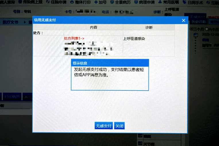 醫(yī)生診療系統(tǒng)界面確認無感支付。