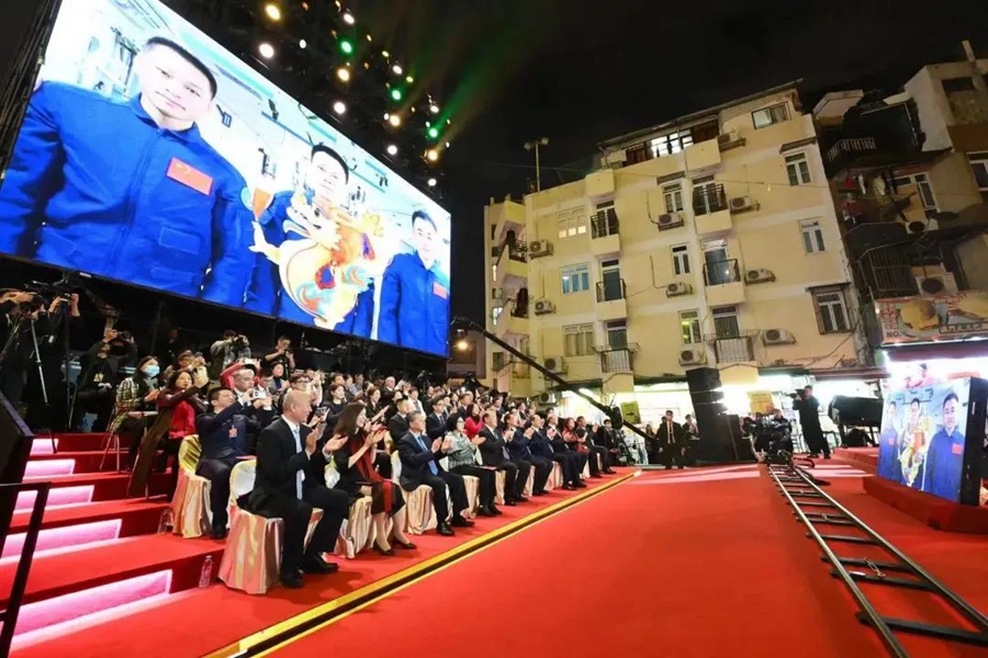 啟動儀式前,駐守在中國空間站的航天員手持“歡樂春節(jié)”吉祥龍,通過視頻方式向現(xiàn)場觀眾和全球華人送上來自“天宮”的龍年新春祝福。