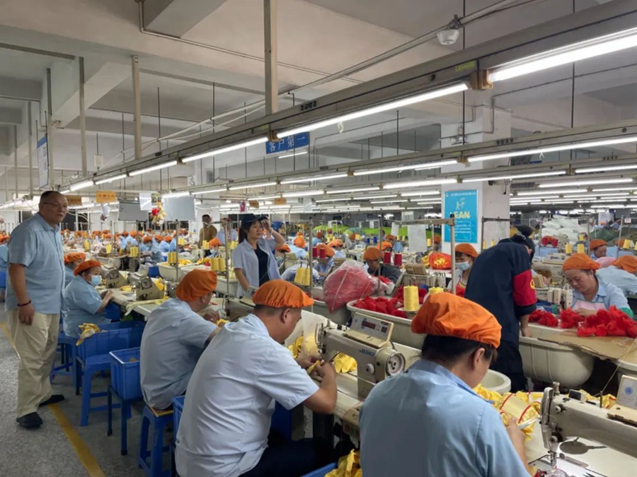 企業(yè)搶抓訂單生產(chǎn)(圖源:茶山融媒)