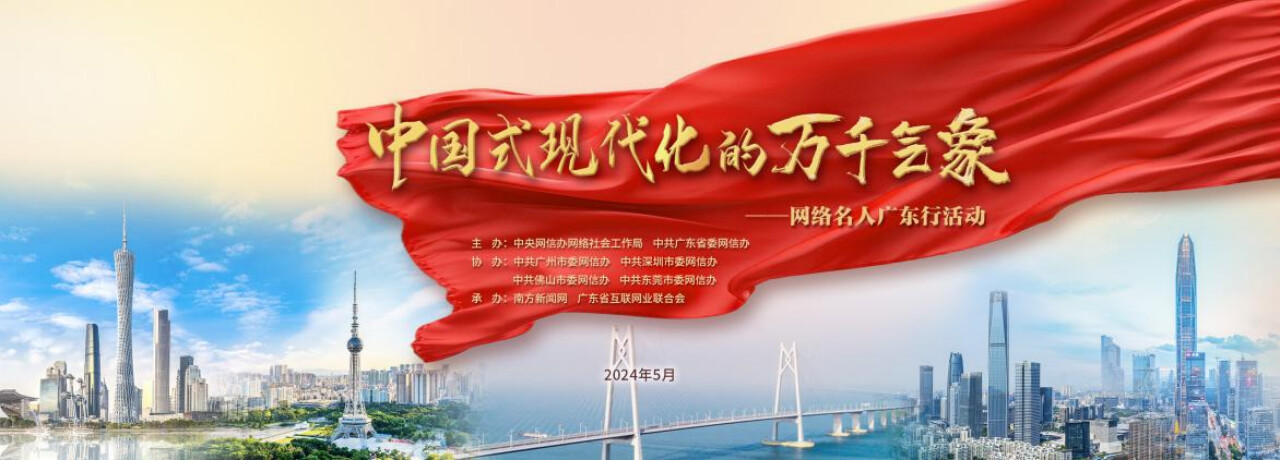 5月29日起,“中國式現(xiàn)代化的萬千氣象”網(wǎng)絡(luò)名人廣東行活動正式啟動。來自全國各地各領(lǐng)域的20位網(wǎng)絡(luò)名人將走訪深圳、東莞、佛山、廣州四地,近距離感受廣東高質(zhì)量發(fā)展的蓬勃動能,實地領(lǐng)略產(chǎn)業(yè)科技互促雙強的有力步伐,親眼見證嶺南文化在新質(zhì)生產(chǎn)力的賦能下煥發(fā)時代光彩。期待在接下來幾日的充實行程中,網(wǎng)絡(luò)名人們能以眼觀發(fā)展、以筆書豪情,在山海奔赴間品味中國式現(xiàn)代化廣東實踐的萬千氣象,以多維立體之姿講述更強更美的廣東故事。