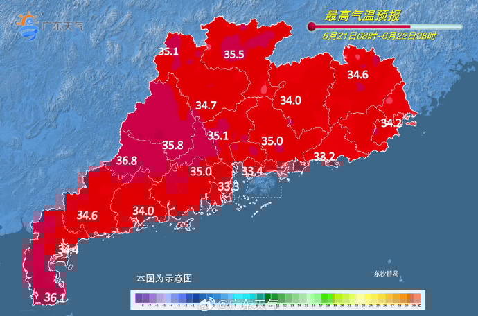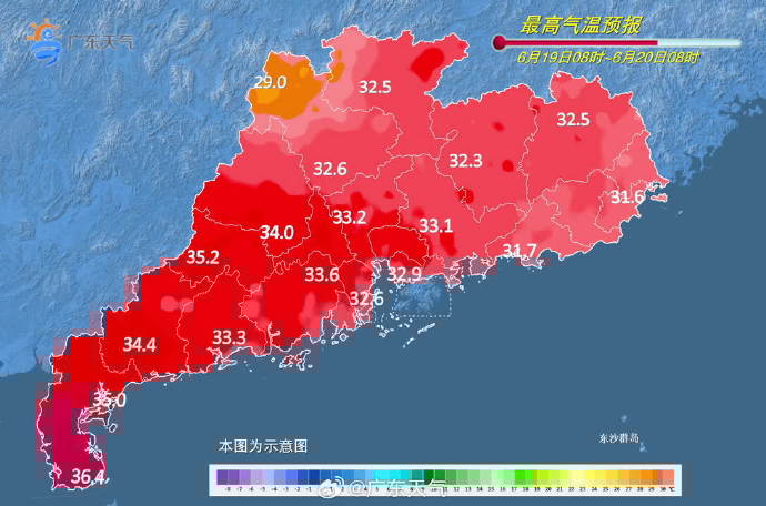 據(jù)廣東氣象部門消息,今天(6月19日),韶關(guān)、清遠、肇慶北部多云到陰天,有中到大雨局部暴雨,其余市縣多云,有(雷)陣雨局部大雨。最高氣溫:粵西、珠三角西部、梅州34~36℃,其余市縣31~33℃。天氣趨炎熱,注意及時補充水分。