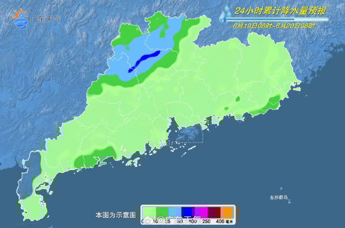 6月19日,清遠北部、韶關(guān)北部多云到陰天,有中到大雨,局部暴雨;其余市縣多云,有(雷)陣雨局部大雨,雷雨時局地伴有8級左右短時大風(fēng)。