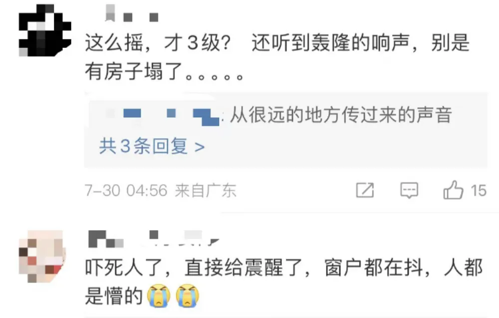 許多微博網友紛紛表示:“直接給震醒了”“震感蠻強的”……