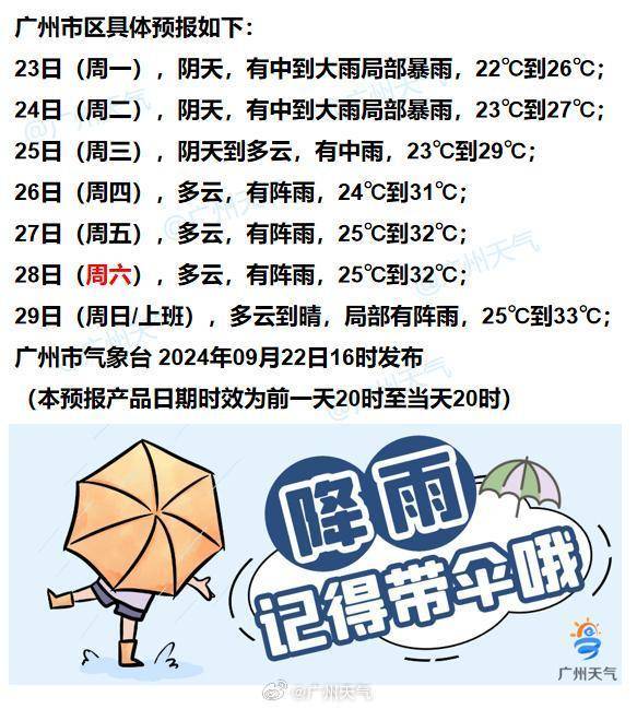 @廣州天氣預計,未來一周,雨水是主角,“阿冷”來客串。25日起,副熱帶高壓加強,廣州降雨減弱氣溫回升,26日起,廣州市區(qū)日最高氣溫有望重新突破30℃。大家出門還是隨身帶傘,及時關注最新預報。
