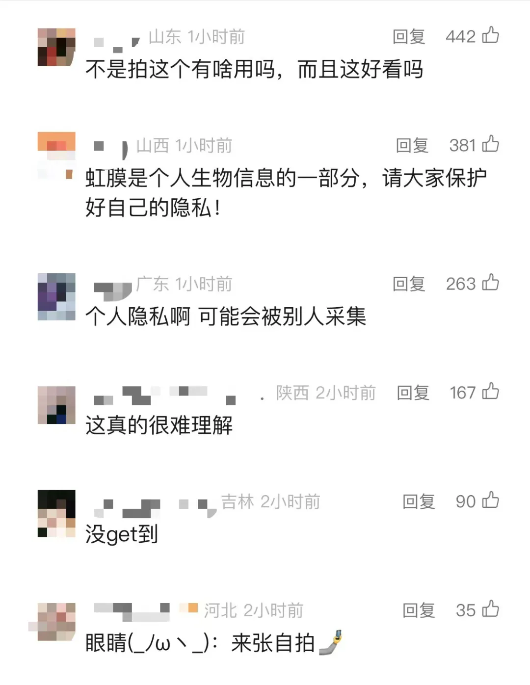 虹膜寫真走紅后,不少網(wǎng)友質(zhì)疑其安全性,表示“個(gè)人隱私可能會(huì)被采集”。