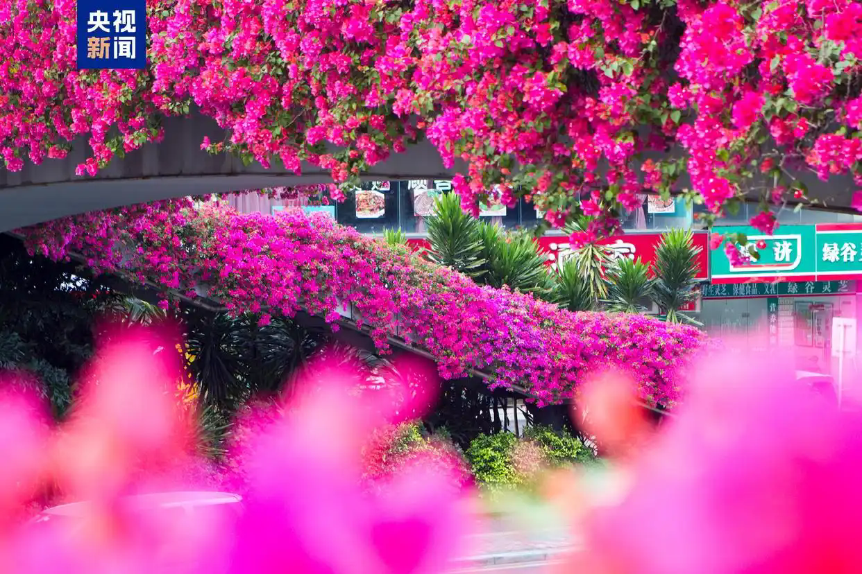 大部分簕杜鵑自然花期主要集中在8-12月,簕杜鵑會(huì)根據(jù)氣候條件情況自然開花,每輪花期之間間隔15-20天左右,間隔期處于無花狀態(tài)。廣州市林業(yè)和園林科學(xué)研究院白云苗圃主任溫志告訴記者,如今廣州橋梁綠化通過微修剪控芽、施肥、控水促花、生長(zhǎng)激素輔助等花期調(diào)控技術(shù)實(shí)現(xiàn)四季有花。繁紅花道、空中彩帶,七彩花廊成為廣州一道道亮麗風(fēng)景。