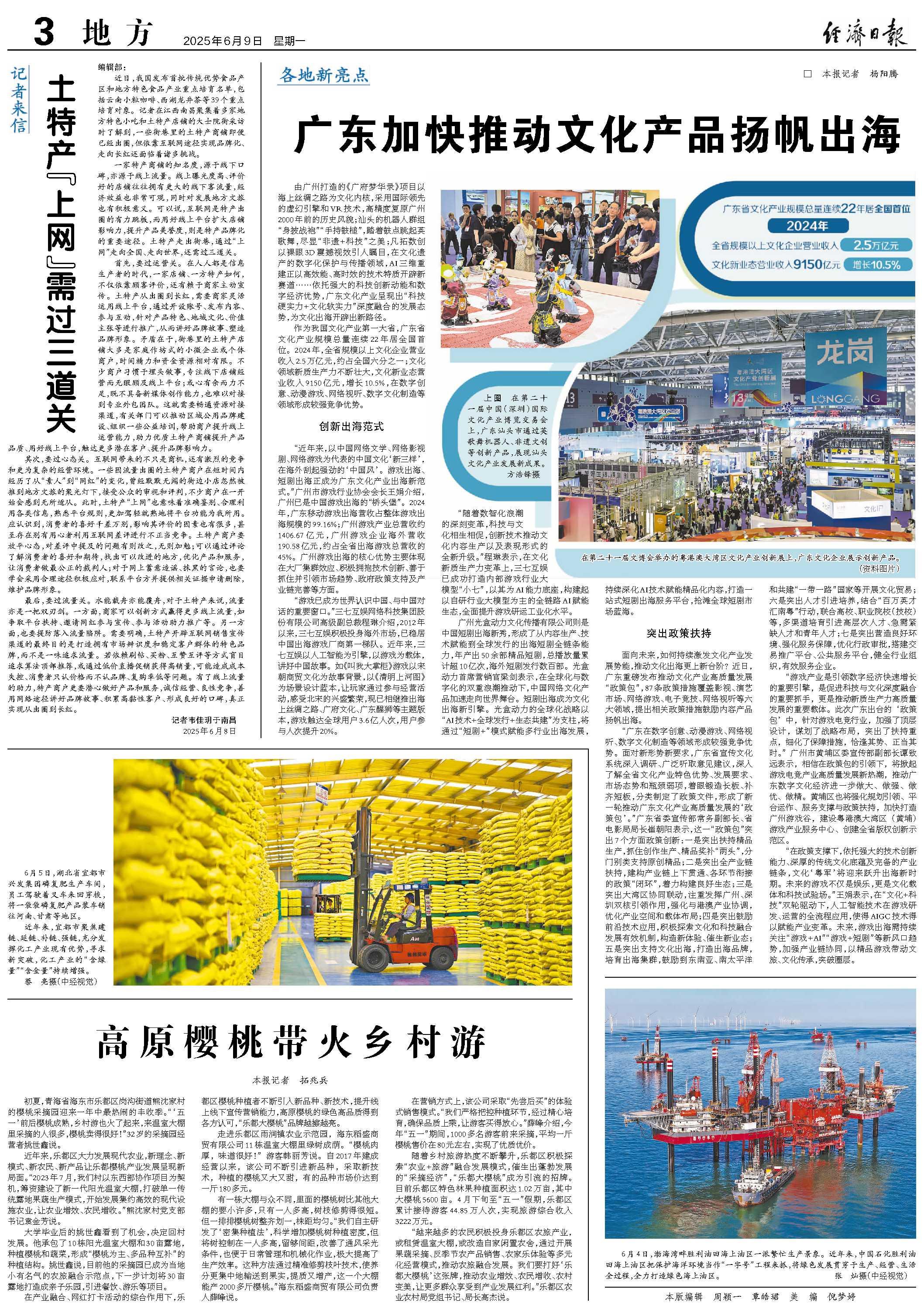 “廣東在數(shù)字創(chuàng)意、動(dòng)漫游戲、網(wǎng)絡(luò)視聽、數(shù)字文化制造等領(lǐng)域形成較強(qiáng)競爭優(yōu)勢。面對新形勢新要求,廣東省宣傳文化系統(tǒng)深入調(diào)研、廣泛聽取意見建議,深入了解全省文化產(chǎn)業(yè)特色優(yōu)勢、發(fā)展要求、市場態(tài)勢和瓶頸弱項(xiàng),著眼鍛造長板、補(bǔ)齊短板,分類制定了政策文件,形成了新一輪推動(dòng)廣東文化產(chǎn)業(yè)高質(zhì)量發(fā)展的‘政策包’。”廣東省委宣傳部常務(wù)副部長、省電影局局長崔朝陽表示,這一“政策包”突出7個(gè)方面政策創(chuàng)新:一是突出扶持精品生產(chǎn),抓住創(chuàng)作生產(chǎn)、精品獎(jiǎng)補(bǔ)“兩頭”,分門別類支持原創(chuàng)精品;二是突出全產(chǎn)業(yè)鏈扶持,建構(gòu)產(chǎn)業(yè)鏈上下貫通、各環(huán)節(jié)銜接的政策“閉環(huán)”,著力構(gòu)建良好生態(tài);三是突出大灣區(qū)協(xié)同聯(lián)動(dòng),注重發(fā)揮廣州、深圳雙核引領(lǐng)作用,強(qiáng)化與港澳產(chǎn)業(yè)協(xié)調(diào),優(yōu)化產(chǎn)業(yè)空間和載體布局;四是突出鼓勵(lì)前沿技術(shù)應(yīng)用,積極探索文化和科技融合發(fā)展有效機(jī)制,構(gòu)造新體驗(yàn)、催生新業(yè)態(tài);五是突出支持文化出海,打造出海品牌,培育出海集群,鼓勵(lì)到東南亞、南太平洋和共建“一帶一路”國家等開展文化貿(mào)易;六是突出人才引進(jìn)培養(yǎng),結(jié)合“百萬英才匯南粵”行動(dòng),聯(lián)合高校、職業(yè)院校(技校)等,多渠道培育引進(jìn)高層次人才、急需緊缺人才和青年人才;七是突出營造良好環(huán)境、強(qiáng)化服務(wù)保障,優(yōu)化行政審批,搭建交易推廣平臺、公共服務(wù)平臺,健全行業(yè)組織,有效服務(wù)企業(yè)。