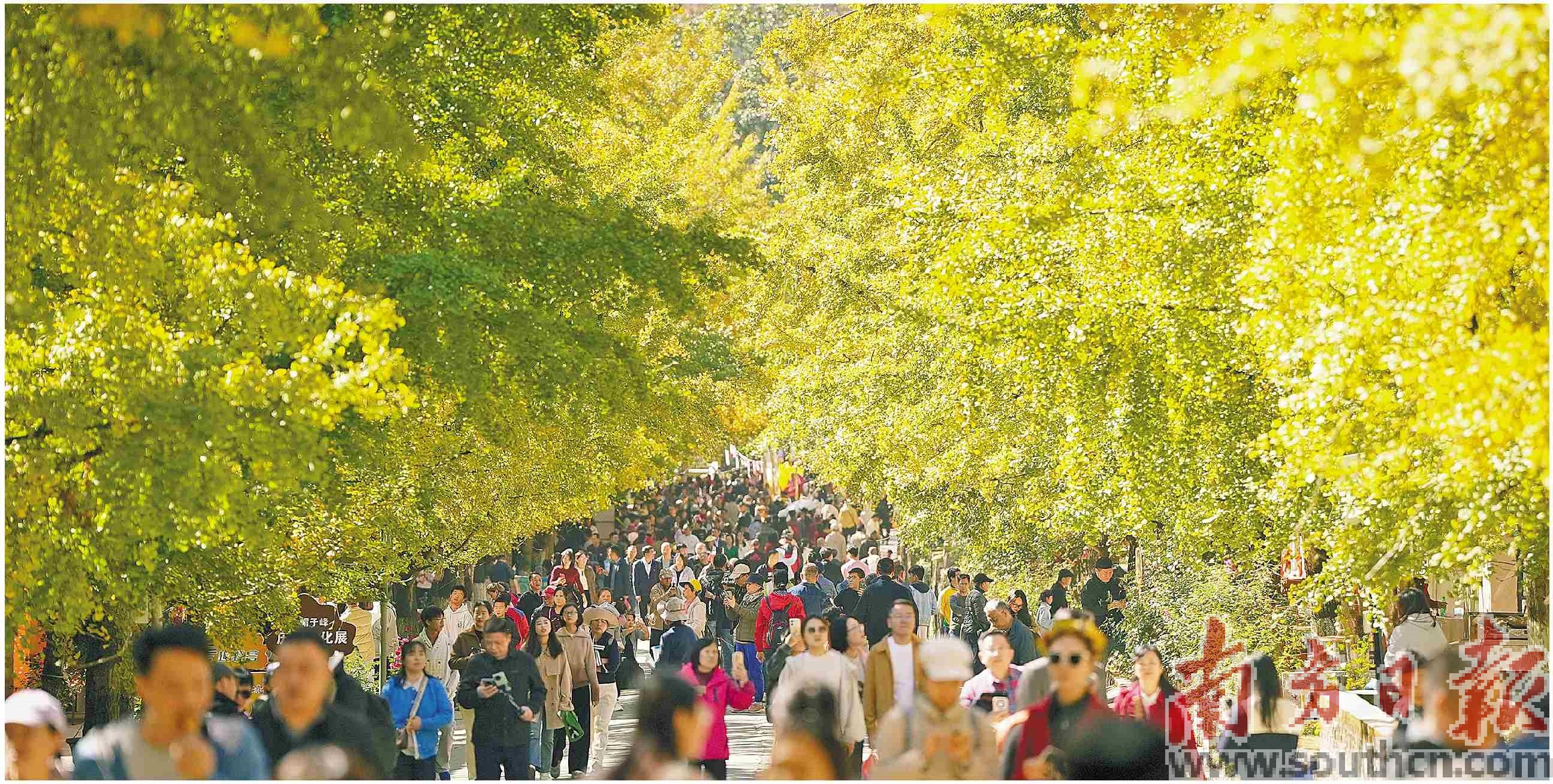 日前,韶關(guān)南雄的銀杏迎來最佳觀賞期。作為國內(nèi)緯度最低的天然銀杏生長區(qū)域,南雄有銀杏林10萬多畝,是嶺南秋色的“顏值擔(dān)當(dāng)”。目前,南雄帽子峰最負(fù)盛名的銀杏觀賞點(diǎn)——“黃金大道”的銀杏已換上金裝,迎來大量游客賞景。