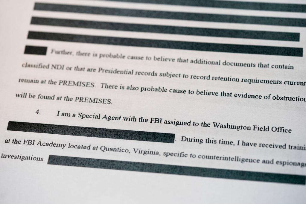 2022年8月26日,美國司法部公布聯(lián)邦調(diào)查局申請搜查前總統(tǒng)特朗普住所海湖莊園時向法院提交書面證詞的部分內(nèi)容。這份38頁的文件有大量內(nèi)容被涂黑加密。司法部解釋說,這是為了保護證人不受恐嚇或報復(fù)。新華社記者劉杰攝