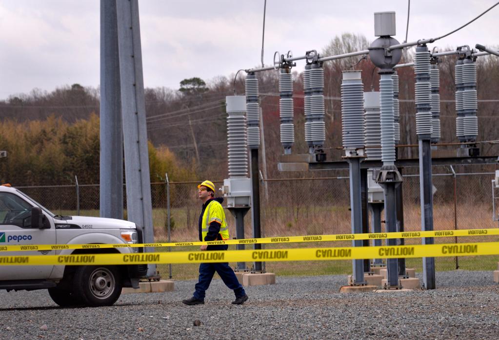 2015年4月7日,工作人員在美國馬里蘭州查爾斯縣南部一座變電站維修。當(dāng)日,這座變電站發(fā)生輕微爆炸,導(dǎo)致首都華盛頓突發(fā)大范圍停電,白宮、國會(huì)和國務(wù)院等機(jī)構(gòu)受到波及。新華社記者殷博古攝
