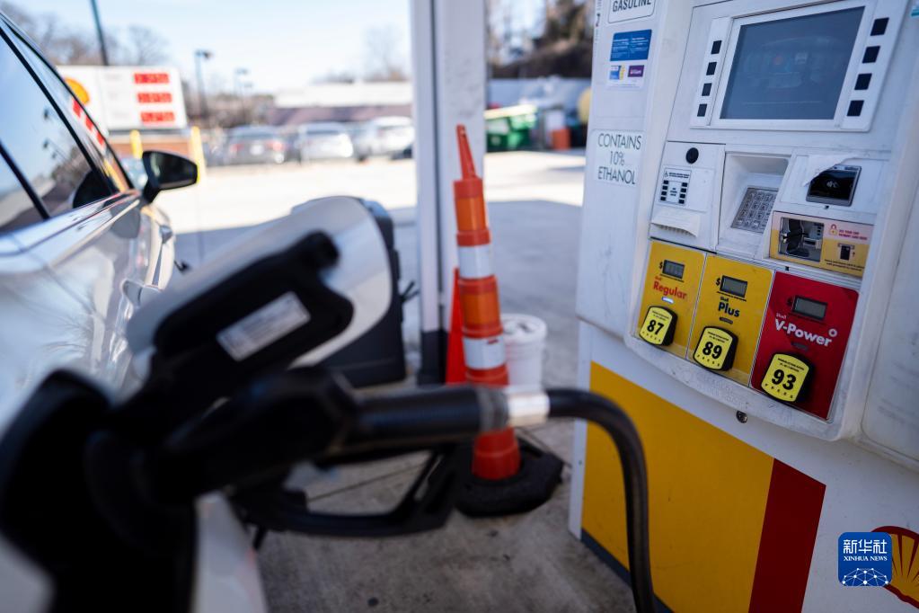 這是2月14日在美國(guó)弗吉尼亞州阿靈頓拍攝的一處加油站。新華社記者 劉杰 攝