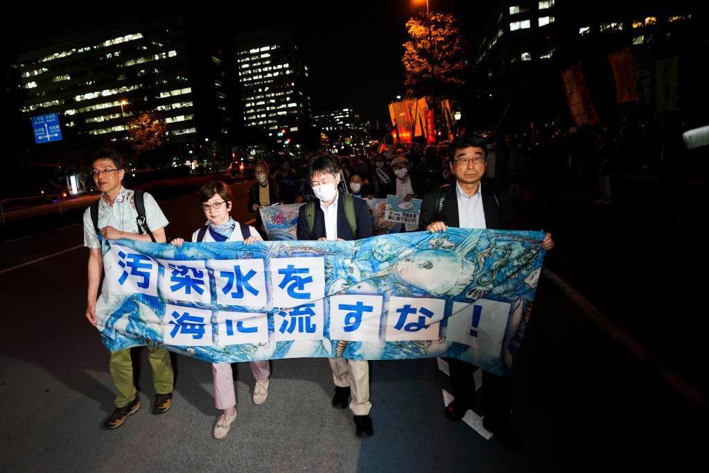 2023年5月16日,在日本東京,民眾要求叫停核污染水排海計(jì)劃。新華社記者張笑宇攝
